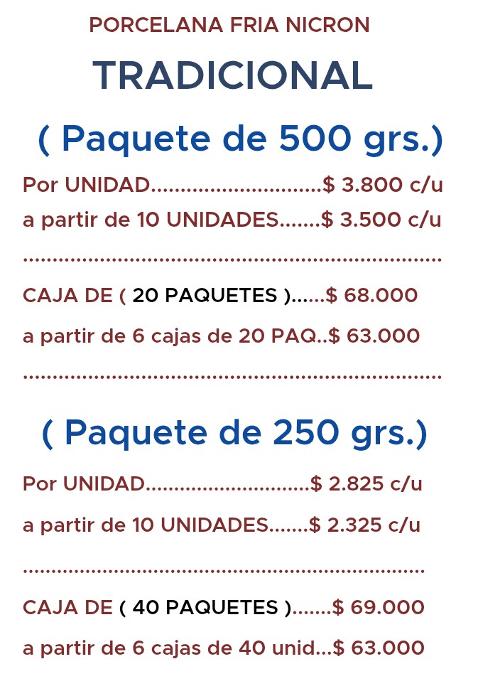 ( x Bulto de 20 paquetes.......$ 1.499 c/u