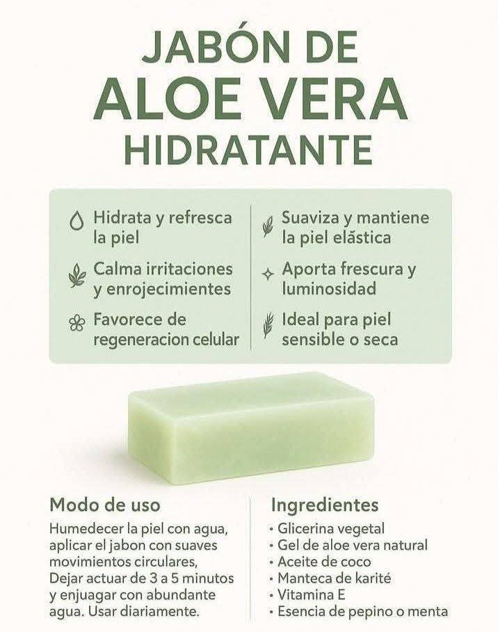 Éste jabón artesanal de sábila combina hidratación profunda y un aroma fresco que enamora !!